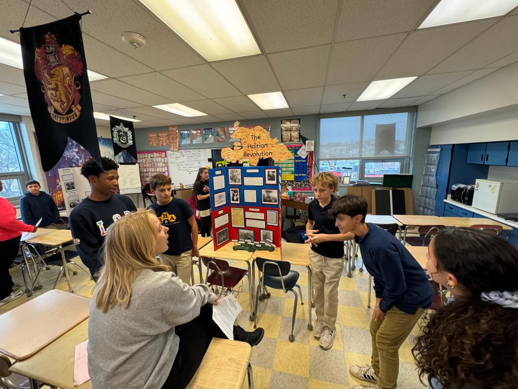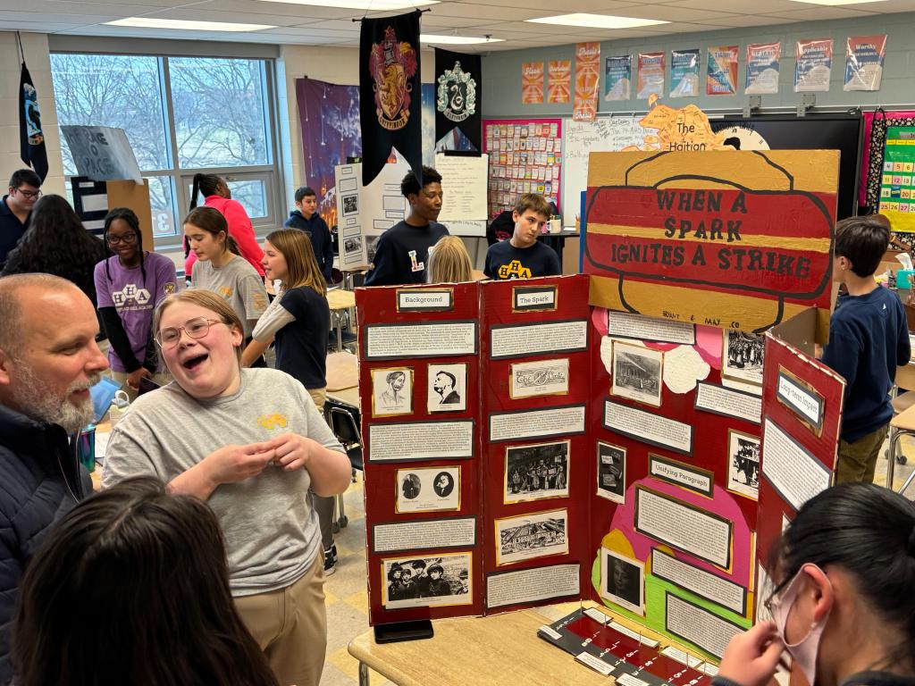HHA middle school students impressed the community with their creativity and deep learning as they presented projects on Revolution, Reaction, and Reform. The school extends its gratitude to the dedicated volunteers and judges—especially partners from Boys’ Latin School of Maryland—and to the incredible staff who made the event a success. HHA is proud of its students and looks forward to cheering on the finalists as they advance to the citywide competition.